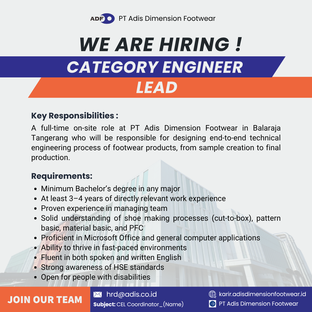 A full-time on-site role at PT Adis Dimension Footwear in Balaraja Tangerang who will be responsible for designing end-to-end technical engineering process of footwear products, from sample creation to final production.?
